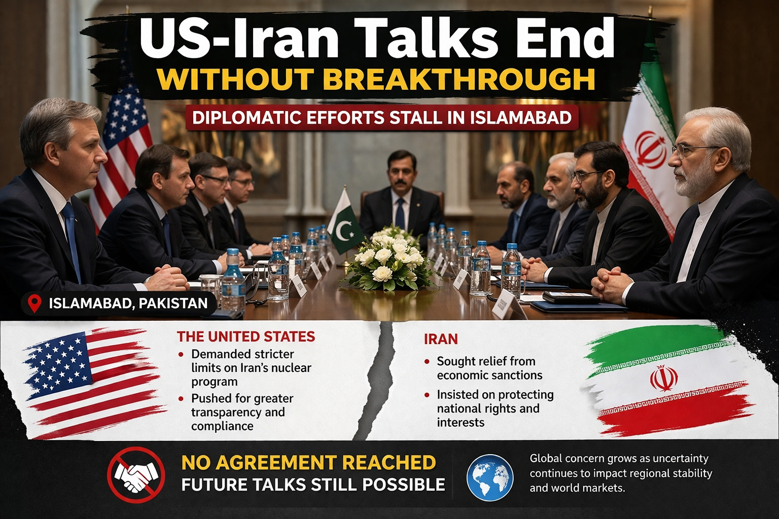 In a significant yet inconclusive diplomatic development, high-level talks between the United States and Iran held in Islamabad, Pakistan, have ended without a formal agreement. The marathon discussions, which stretched for several hours, were aimed at easing ongoing tensions and finding common ground on critical geopolitical issues. However, despite prolonged negotiations, both sides walked away without a breakthrough.