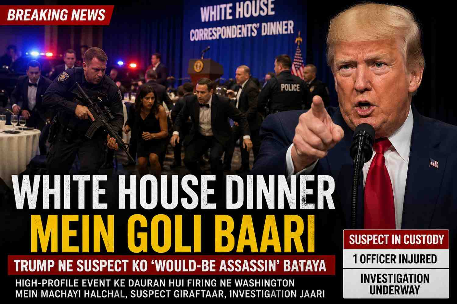 Washington D.C. mein hue prestigious White House Correspondents’ Dinner ke dauran ek shocking shooting incident ne poore desh ko hila diya. Event ke beech achanak goli chalne ki awaaz sunai di, jiske baad wahan maujood logon mein afra-tafri mach gayi. Security agencies ne turant action lete hue President Donald Trump aur anya senior leaders ko surakshit jagah par evacuate kar diya.