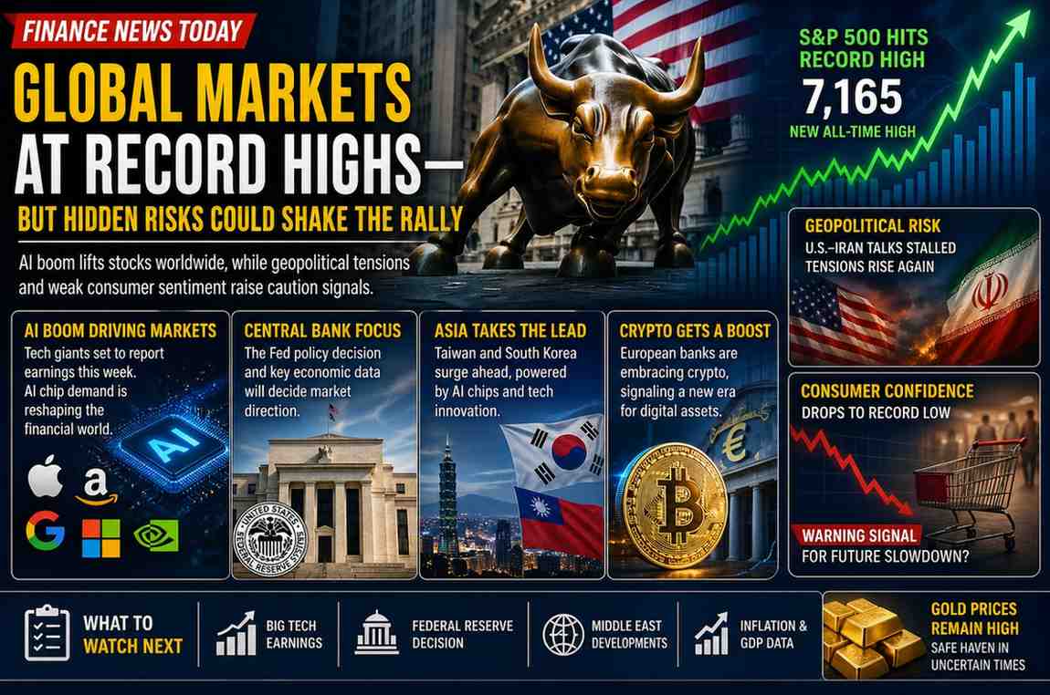 Global financial markets are currently riding a wave of optimism, with major indices touching record highs. The S&P 500 has surged to unprecedented levels, largely fueled by strong performance in technology and artificial intelligence (AI)-driven companies. Investors are showing confidence, but beneath this growth lies a layer of uncertainty that cannot be ignored.
