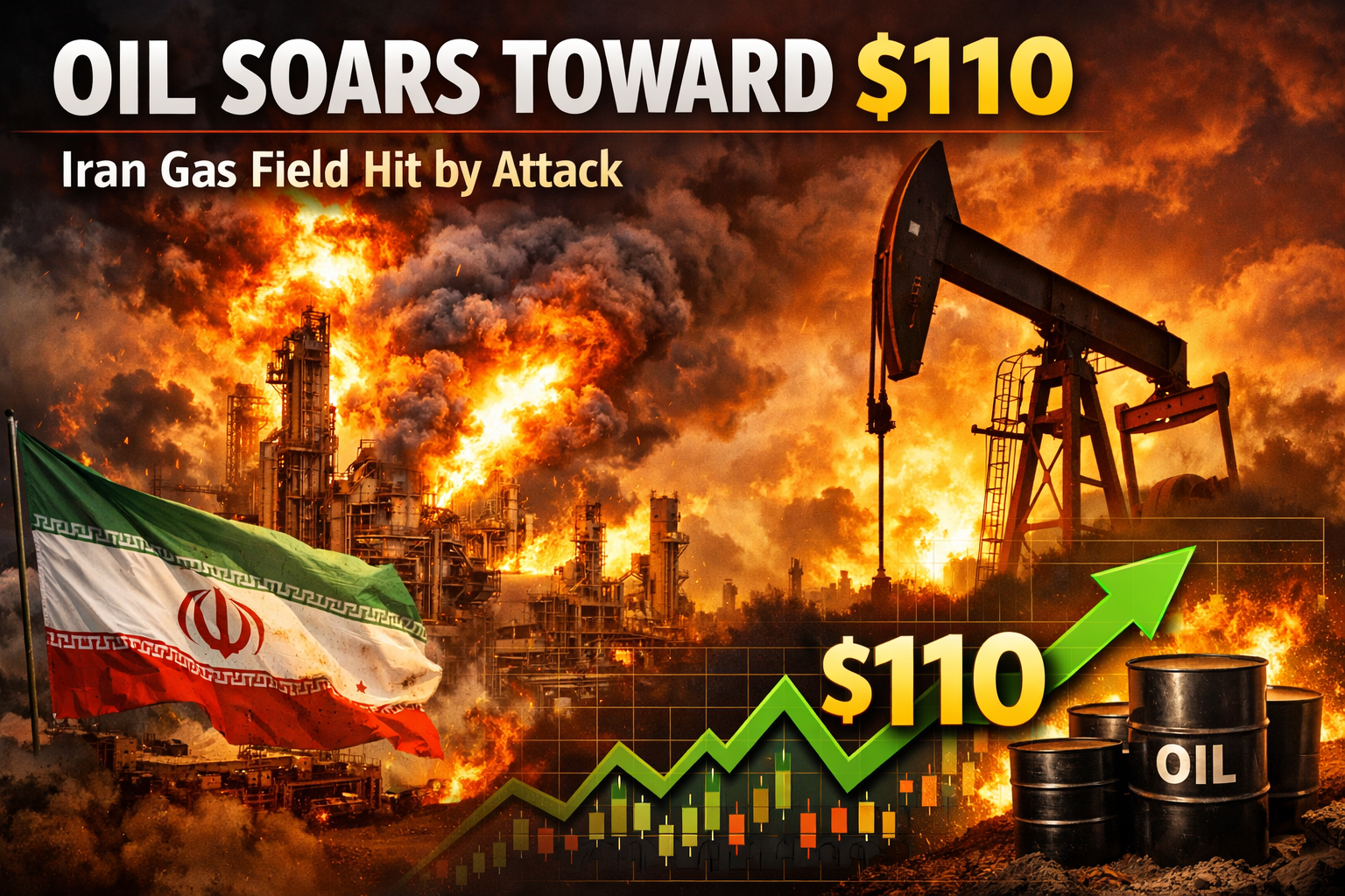 Global energy markets witnessed a sharp reaction after a major attack targeted Iran’s critical energy infrastructure, pushing crude oil prices close to the $110 per barrel mark. The strike on the South Pars gas field—one of the world’s largest natural gas reserves—has intensified fears of supply disruptions and further escalation in the already volatile Middle East region.