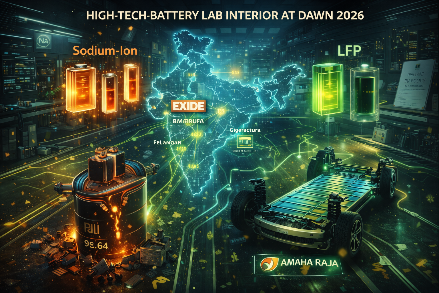 Federation of Automobile Dealers Associations (FADA) FY26 EV sales data; Exide Industries regulatory filings and investor updates (March 2026); Amara Raja company disclosures and offtake agreements; CATL and BYD announcements on sodium-ion commercialization (February–March 2026); Union Budget 2026 notifications and PLI scheme guidelines; contemporaneous reporting from The Hindu BusinessLine, Economic Times, PIB, and Battery Tech India 2026 expo official releases dated February–April 16, 2026. All figures and timelines cross-verified from primary company and government sources.