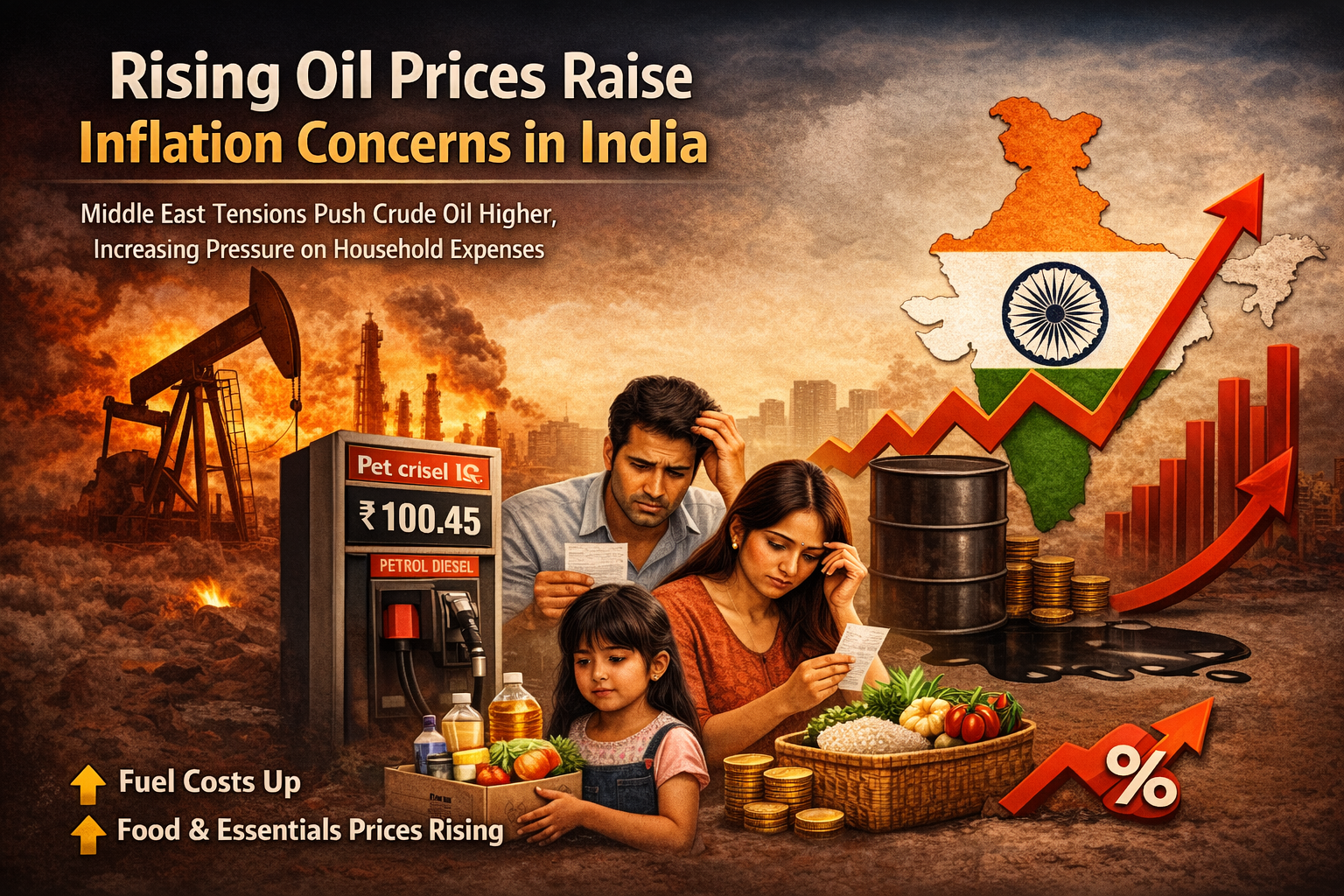 The recent surge in global oil prices, driven by escalating tensions in the Middle East, is raising fresh concerns about inflation in India. As a country heavily dependent on crude oil imports, India is particularly vulnerable to fluctuations in international energy markets.