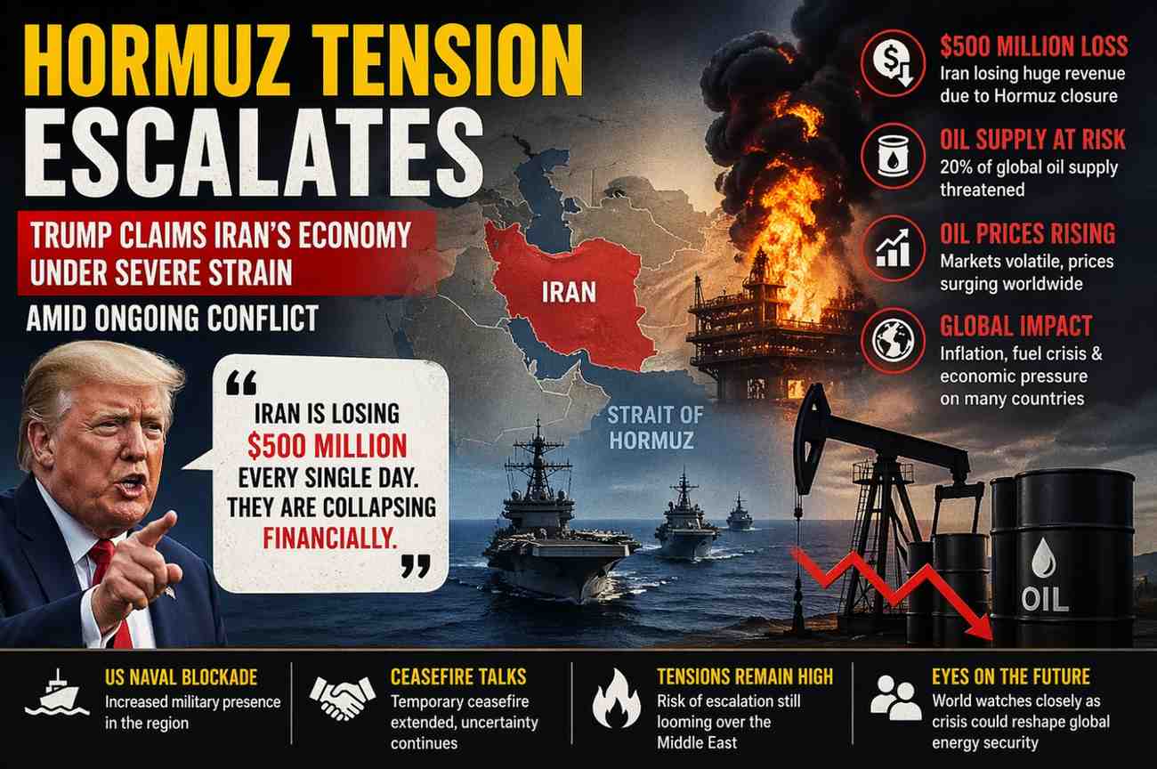 The ongoing conflict involving Iran, Israel, and the United States has taken a sharp economic turn, with former U.S. President Donald Trump claiming that Iran is facing a serious financial breakdown. According to his recent statements, Iran is losing massive amounts of revenue daily due to disruptions in one of the world’s most critical oil transit routes — the Strait of Hormuz.